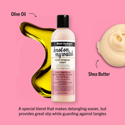 - Always Detangle While Wet: Curly hair tends to break more easily when dry, so it’s important to detangle while it’s still wet and conditioned. To make this step easier, apply a generous amount of leave-in conditioner or detangler. Aunt Jackie’s Knot On My Watch Instant Detangling Therapy is perfect for this, helping to smoothly detangle your curls without causing breakage.